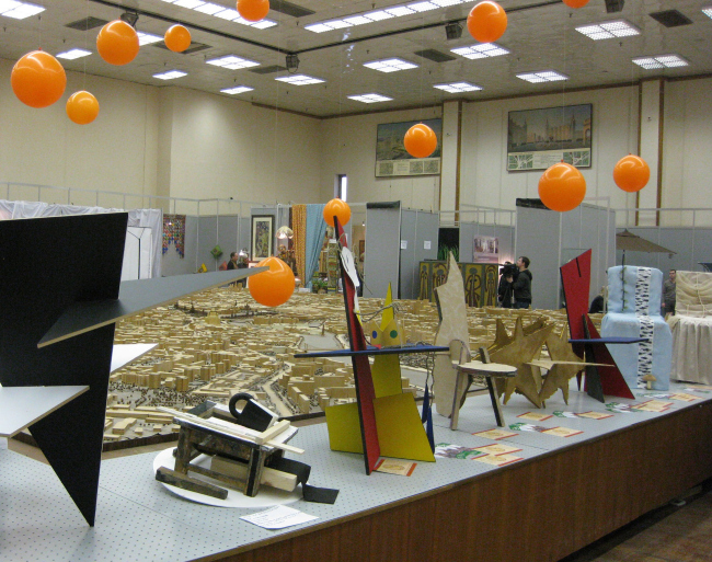 В этом году у фестиваля нет никакого специального девиза или лозунга. По результатам знакомства с экспозицией можно предположить, что все дело в том, что для профессионального сообщества самым актуальным из искусств по-прежнему остается выживание в условиях экономического кризиса. Но не посвящать же фестиваль теме, вокруг которой уже второй год подряд так или иначе вертятся все архитектурные мероприятия! Поэтому организаторы от темы отказались вовсе, а ставку сделали на оптимизм как таковой. Очень кстати тут оказался и нынешний порядковый фестиваля, заставивший вспомнить о самом ироничном плутовском романе XX века. Впрочем, у творения Ильфа и Петрова мероприятие позаимствовало лишь мебельную «составляющую» – главной творческой акцией «Под крышей дома-2010» стал турнир по проектированию стульев и «того, что может быть названо этим словом». Впрочем, обо всем по порядку.