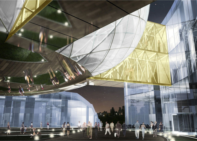 Но, пожалуй, главное достоинство спроектированного «Архитектуриумом» комплекса заключается в его сомасштабности окружающей застройке. Самые яркие архитектурные элементы композиции – сфероид и обнимающие его «руки» -- выполнены из максимально прозрачных материалов, нивелирующих давление этих объемов на невысокие исторические памятники, расположенные по соседству, тогда как основные корпуса, «держащие» углы нового квартала, поддерживают их строй и ритм. Современная по композиции и технологии, новая художественная галерея органично сосуществует со своим окружением и способна стать его неотъемлемой частью.