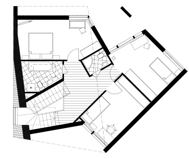 Отдельные участки с домами собираются в кварталы, которые в свою очередь концентрируются вокруг центрального общественного пространства, где располагаются школы, детские сады и небольшой парк с озером. Каждый квартал имеет смешанный тип застройки: по его периметру, граничащему с общественным центром, стоят малоэтажные секционные домики, за ними в глубине квартала – таунхаусы, еще дальше – отдельные дома. Все три типа домов созданы с использованием одного и того же модуля, правда, это отнюдь не банальный параллелепипед, как можно было бы предположить. Наоборот, архитекторы мастерской Асадова были верны себе и отдали предпочтение столь любимой ими нелинейной геометрии: их «дома XXI века» имеют, как минимум, пять углов, а в ряде случаев кровля переходит в стену. А для того, чтобы подобные пластические изыски не причиняли неудобства будущим жильцам, архитекторы самым тщательным образом продумали внутренние планировки, позволяющие использовать многоугольное пространство максимально рационально. И если в случае с коттеджами и таунхаусами заказчик может выбрать наиболее подходящий именно его семье вариант планировки, то секционные дома собраны, как конструктор, из квартир всех типов, причем все секции имеют различную отделку фасадов, а между собой соединены лестницами.