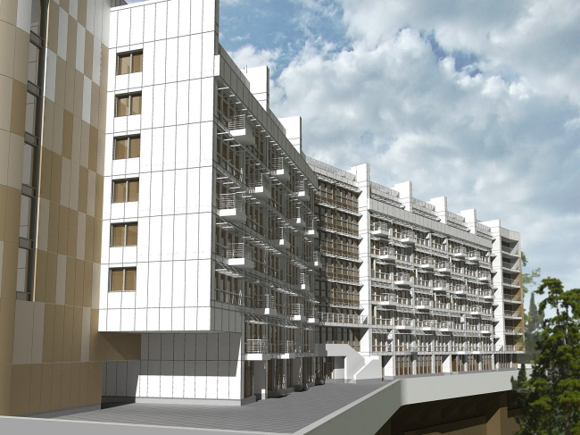 Вслед за высотным «Титаником» мастерская «Алексей Бавыкин и партнеры» спроектировала на Альпийской улице города Сочи малоэтажный жилой комплекс галерейного типа.