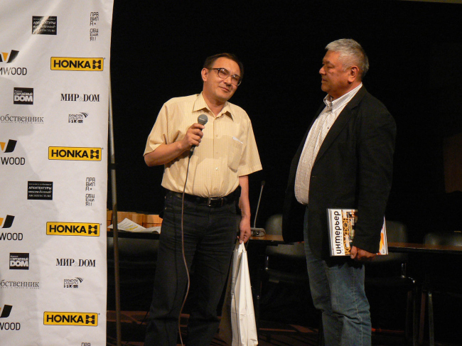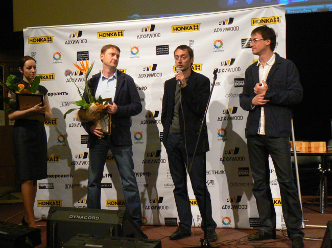 28 мая в ЦДХ в рамках Арх Москвы состоялось вручение новой премии в области деревянной архитектуры «АРХИWOOD», организованной куратором Николаем Малининым и PR-Агентством «Правила Общения» при спонсорской поддержке компании «Росса Ракенне СПб», эксклюзивного дистрибьютора домов HONKA в России. Премию вручили по пяти номинациям – «функция», «конструктив», «дерево в отделке», «арт-объект» и «проект», причем по каждой их них два раза: по выбору жюри и по результатам народного голосования, которое проводилось одновременно в интернете на сайте премии и на выставке.