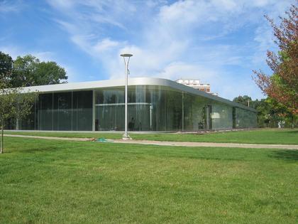 В новом корпусе Музея искусств Толидо, штат Огайо, выставлена обширная коллекция изделий из стекла, начиная с древнеегипетских сосудов для благовоний и заканчивая работами современных художников. Также там находятся залы временных выставок и стеклодувные мастерские. Здание представляет собой своего рода вариант «Стеклянного дома» Филипа Джонсона. Несмотря на значительную площадь в 3000 кв. м, одноэтажная постройка практически прозрачна: стоя с одной стороны, можно легко видеть парк, людей и машины, находящиеся с другой, через 15 слоев стекла - внешних и внутренних стен музея, носящего очевидное название «Стеклянный павильон». Плоскую крышу поддерживают скрытые за белой штукатуркой стройные стальные опоры и выгородки. Стены из стекла высокой прозрачности, с низким содержанием железа состоят из панелей, укрепленных в пазах в бетонном полу и в потолке. Целью архитекторов было сделать границу между внутренним пространством павильона и парком, в котором он построен, максимально прозрачной. Прозрачность стен постройки SANAA сочетается со сложностью ее плана, «впускающего» внутрь природное окружение. Это впечатление усиливают три засаженных зеленью внутренних двора, которые служат своего рода дополнительными вестибюлями, где посетители могут отдохнуть. Особую сложность при проектировании представляла необходимость сочетать в одном здании выставочные залы с ценными экспонатами и стеклодувные мастерские для местных художников и студентов художественных училищ. Часть их удалось разместить под землей (подвальные помещения павильона по площади равняются наземным), но помещения с печами, где стеклянная масса нагревается до температуры в 1600 градусов по шкале Цельсия, находятся всего лишь через узкий коридор от галерей. Архитекторам удалось создать необходимую тепло- и звуко-изоляцию, не нарушив общий облик здания, но во включении в комплекс мастерских есть и важный положительный аспект. Так как они открыты в часы работы музея, они привносят динамику и элемент перформанса в экспозицию, а также цветовое и световое разнообразие: благодаря прозрачности перегородок, горящие стекловаренные печи отбрасывают отблески на экспонаты даже в дальних залах музея.Стеклянный павильон Музея искусств Толидо. Фото: Park via flickr.com. Лицензия CC BY 2.0