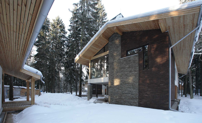 И на фасадах, и в интерьере этого дома архитектор намеренно использовал только натуральные и при этом не очень дорогие материалы, позволяющие соблюсти баланс между основательностью внешнего облика и его визуальной легкостью, а также сделать строительство в меру экономичным. «По-моему, в итоге у меня получилось шале, но созданное средствами современной архитектуры, – говорит Роман Леонидов. – А в мастерской мы между собой называем этот дом «скромным обаянием буржуазии». По достоинству дом оценил и сам заказчик – по крайней мере, о продаже коттеджа речь уже не идет, а семья предпринимателя готовится к переезду.