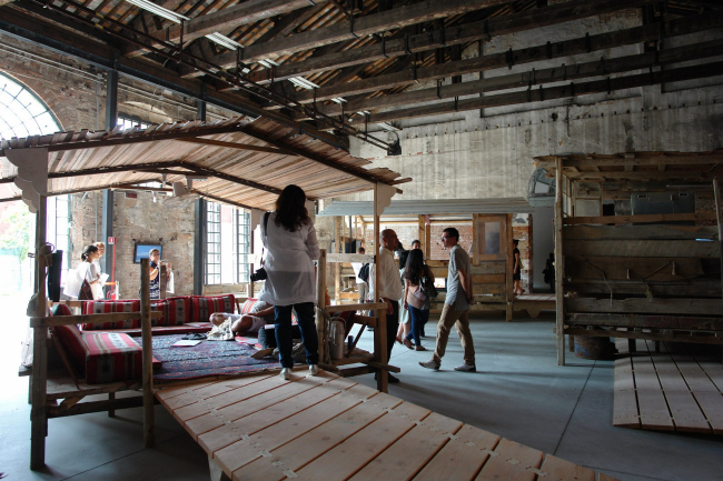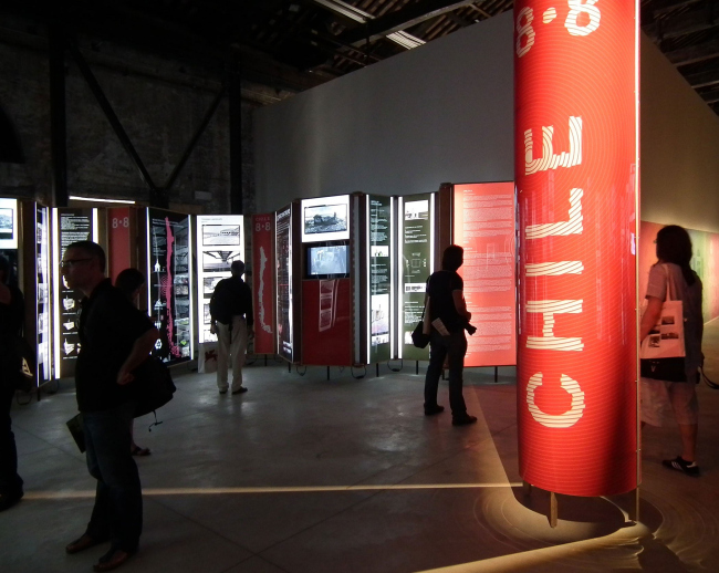 Частая проблема архитектурных выставок, как ни парадоксально – значительный перевес содержания над формой. Традиционные планшеты с планами, диаграммами и пояснительным текстом мелким шрифтом обычно обращаются исключительно к разуму зрителя, но не к его эмоциям. Конечно, это ни в коем случае не порок: неправомерно и даже глупо требовать иного, особенно если речь идет о событии обозримого масштаба, рассчитанном по большей части на профессиональную среду. Но если одновременно показаны десятки самостоятельных проектов, а само мероприятие преимущественно посещает широкая публика (львиная доля посетителей биеннале в течение трех месяцев ее работы – приехавшие посмотреть Венецию туристы), то перенасыщенность информацией в сочетании с частым, намеренным или вынужденным «аскетизмом» физического воплощения создает сильнейшую «музейную усталость», которая порой губительно действует даже на замечательные идеи.