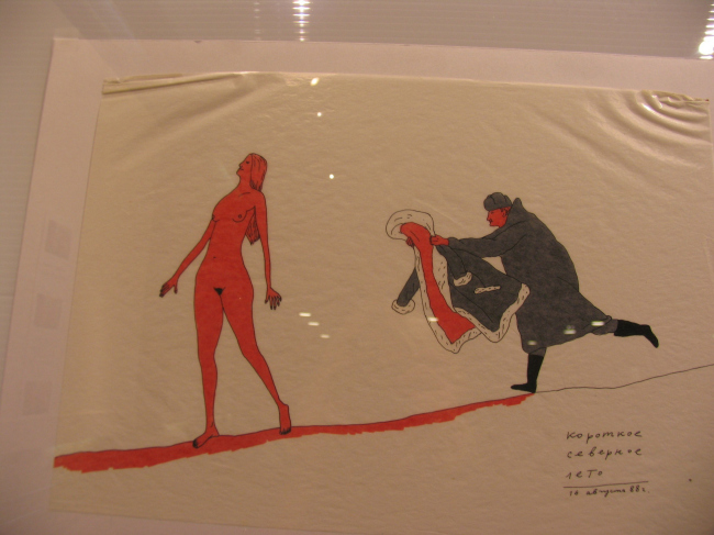 Александр Джикия закончил МАрхИ, но известен как график и поэт. Он – старинный друг группы Арт-Бля (А.Савин, В.Чельцов, М.Лабазов), их знак с бегущими над пропастью человечками нарисовал именно Джикия. Теперь графическое подразделение архитектурной студии «А-Б» издало «Полный каталог», в который вошли рисунки 1982–2004 гг. В середине 80-х были «камерные» фотографии, рисунки и картины. Потом – большей частью рисунки. С 1988 года он входит в художественную группу КвартАрт, занимается иллюстрацией Хармса и самоучителя греческого языка. В 1996 уезжает сначала в Нью-Йорк, потом в Анкару, где преподает основы дизайна, публикует иллюстрации в различных изданиях и пишет книги. Возвратившись в Россию после десяти лет жизни заграницей, Александр Джикия представил обширную ретроспекцию своих графических работ. Каждый рисунок – самостоятельная история. Все они снабжены названием-надписью, которое звучит то как диалог персонажей, то как закадровый голос. Все вместе, возможно как раз из-за подписей, больше всего напоминает рисунки греческих ваз, покинувших свой устойчивый мифологический мир и заинтересовавшихся миром смертных. Обыденные сцены, литературные сюжеты и исторические герои, выхвачены из привычного контекста, расположены на белых листах кальки и разыгрывают перед зрителем забавные, трагичные и порой абсурдные истории. ...Слушающий через горн музыку Бетховен, человек в пальто и с саблей, прыгающий в море за акулой, два человечка с глазами-лампами, у которого одна из них перегорела, драка на улице, выяснение отношений между мужчиной и женщиной ... - сам автор определяет свой метод как «мгновенная регистрация мимолетного мира». Мир этот почерпнут из жизни, всех ее проявлений, но в конечном итоге отображает внутренний мир самого художника.