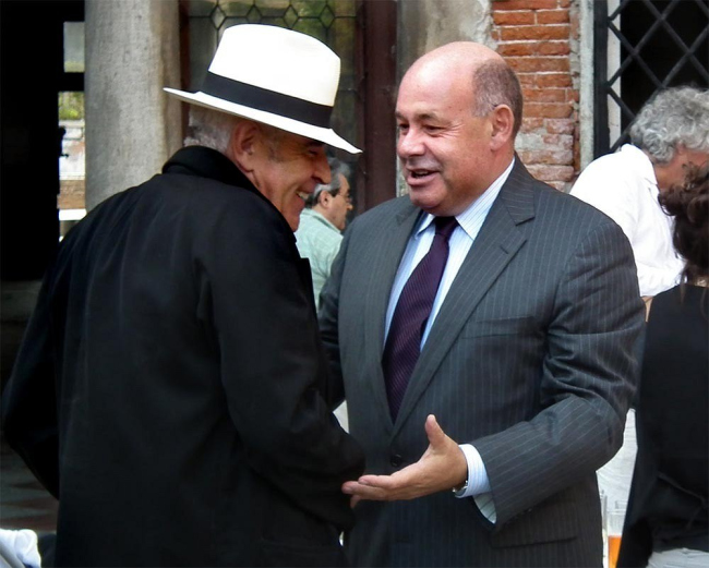 Однако начнем с одного небольшого события, о котором мы еще ничего не сказали: в Армянском колледже, расположенном в палаццо Зенобио, 26 августа открылась выставка «Кабинет директора», посвященная памяти Давида Саркисяна, умершего 7 января этого года. Выставка организована Юрием Аввакумовым и Юрием Григоряном. Это не столько экспозиция, сколько – дань памяти и воспоминание о человеке; ее открытие было до некоторой степени отсроченными поминками, встречей-проводами, и в этом смысле идеально вписывалось в тему биеннале.