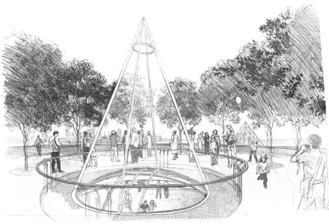 Световой колодец, о наличии которого этот элемент недвусмысленно свидетельствует, проходит через все здание, включая его подземные уровни. На отметке минус 4 метра архитекторы размещают подземное озеро, на берегу которого расположена лифтовая площадка. Это – начальная точка обзора, отсюда как на ладони предстает вся структура музея. Архитекторы намеренно остекляют одну из внутренних стен музея, так, чтобы за ней были видны экспозиционные пространства, а на противоположную непрозрачную поверхность наносят рисунок, изображающий «срез культурных слоев».
