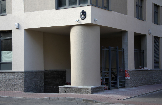Первое впечатление от нового жилого комплекса на улице Егорова можно сформулировать двумя словами: «ох, суров». На саму улицу оно выходит семиэтажным предельно лаконичным фасадом, на уровне внутреннего дворика подрастает до девяти этажей. Важно, что оно посажено точно по границам участка, из-за чего кажется более объемным, чем есть на самом деле, – его словно распирает изнутри. Единственным украшением фасадов, покрытых шероховатой темно-песочной штукатуркой, становятся остекленные лоджии, объединенные в короба высотой в четыре этажа. Нужно сказать, это один из любимых приемов Герасимова, и везде он работает по-разному: где-то скрадывает истинные габариты дома, где-то, наоборот, выгодно их подчеркивает. В жилом комплексе на улице Егорова эти стеклянные щиты визуально дробят массивный объем на несколько относительно некрупных секций. На уровне первого этажа углы здания оформлены очень внушительными колоннами – за ними расположены въезды на подземную парковку, но сами эти опоры столь велики в диаметре, что от пешехода ведущие под дом пандусы скрыты до самого последнего момента. «Я даже не называю этот элемент колонной, если честно, – признается сам Герасимов, – это цилиндр как он есть. Дом проектировался с оглядкой на расположенные неподалеку конструктивистские здания Обводного канала и, как и они, представляет собой соединение чистых геометрических фигур – квадрата, параллелепипеда, цилиндра».