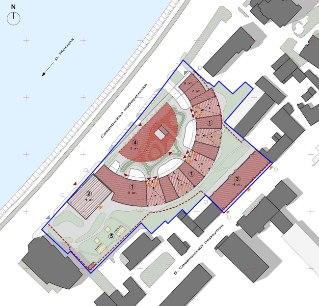 Напомним, ТПО «Резерв» было одним из участников закрытого архитектурного конкурса на проект реконструкции бывшей фабричной территории, расположенной между Большим Саввинским переулком и Саввинской набережной. Участок, расположенный на склоне речного берега с 12-метровым перепадом рельефа от переулка к набережной, уже давно было задумано освободить от фабрики и выстроить на этом месте элитный жилой комплекс с общественными функциями, активно «работающими» для города.
