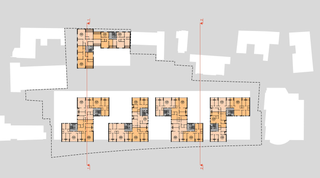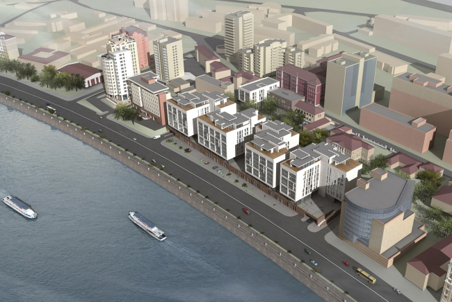 В разгар кризиса инвестиционная активность на участке прекратилась вовсе, а в начале лета этого года заказчик вновь вернулся к идее реконструкции фабричных корпусов. Правда, на этот раз на набережной было решено построить жилье самого что ни на есть элитного класса. Для мастерской это было трудное время – прошло чуть больше месяца с момента кончины Сергея Борисовича, и, возможно, именно поэтому, услышав о кардинальной смене концепции и крайне расплывчатых требованиях к архитектуре комплекса, Игорь Шварцман предложил заказчику провести заказной конкурс. Правда, вряд ли он тогда мог предположить, что именно «СКиП» в этом «дерби» будут сняты с дистанции первыми. Но сначала о самом проекте.