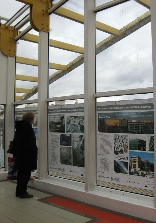 Выставка «Архитектурная Москва: Комплексный подход» проходит при поддержке Правительства Москвы, Префектуры ЦАО г. Москвы и Москомархитектуры. Проект реализуется в два этапа: до 30 ноября фотоэкспозиция будет представлена на уже упомянутом пешеходном мосту им. Б.Хмельницкого, а с 15 декабря по 15 января ее можно будет увидеть в международном аэропорту «Шереметьево», в зоне Duty Free Терминала D.