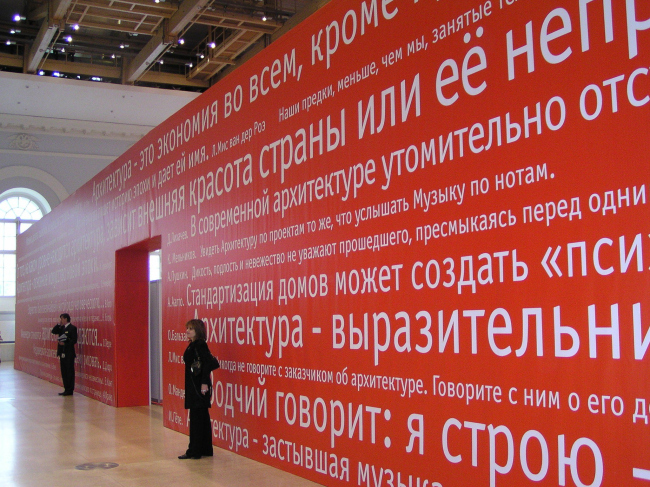 Экспозиции «Зодчества» всегда были сложными для восприятия – потому что состояли, за редким исключением, из стендов с множеством картинок, и некоторой запутанностью коридоров, в которые эти стенды выстраивались. Однако в этом году обычная запутанность усилилась, давая основания предполагать, что к ней стремились как к осознанному эффекту. Это во-первых, а во-вторых, в октябре был устроен не один, а два лабиринта, один там, где все привыкли, на «Зодчестве», а другой неделей раньше в ЦДХ на интерьерной выставке Lifestyle – 2006, где был лабиринт концептуальный, весь красный – специально для развески ядра некоммерческой экспозиции, выставки избранных интерьеров. Как известно, на «Зодчестве» интерьеров почти нет, не соответствуют масштабу. Получилось так, что две выставки в какой-то мере дополнили друг друга, показав разную архитектуру (хотя и не всю), в формате лабиринта. Подозрения приобретают устойчивость, когда мы узнаем, что дизайн обеих выставок делали одни и те же люди – архитекторы Влад Савинкин и Владимир Кузьмин, выступив таким образом в роли мифологического Дедала. Осталось найти Минотавра, иными словами – кто живет в лабиринте?
