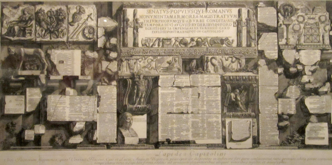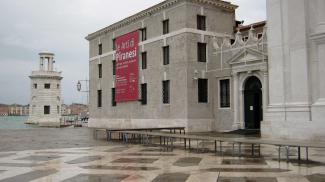 Выставка для меня началась с того момента, как вапоретто театрально отчалил от «гибнущего Титаника» и по зелёным волнам направился к острову Сан Джорджо, к любимым Палладио и Пиранези. И там, на выставке Пиранези, я, наконец, успокоился, почувствовав себя, как дома. Прежде всего, я увидел удивительное внутреннее пространство, где была размещена экспозиция, заканчивающееся где-то в темноте деревянными балками. Всё внимание света – на гравюры. Открытие первое в том, что прекрасные, как мне казалось, копии очень сильно отличаются от подлинников. И я, подчас, не узнавал знакомых мне работ. Особенно это относится к большим офортам. Гравюрный оттиск, как и архитектуру, невозможно воспроизвести книжной полиграфией. Большая гравюра имеет свой масштаб. К ней нужно идти. Сначала воспринимается образ целиком, а при приближении, замечаешь всё больше и больше деталей, до причудливой паутины узоров авторского штриха. Неровности бумаги дышат, делая образы объёмными и живыми. Один такой офорт можно разглядывать часами, гуляя по античным мостовым, заглядывать в арки акведуков. Есть не просто красивые картинки, а листы с огромным количеством информации об археологии, архитектуре с текстом, чертежами планов и разрезов. Поразила своим масштабом четырёхметровая колонна Трояна, состоящая из двух частей с полным описанием подвигов императора. Выставленный в одном месте материал грандиозен и непостижим по масштабу заявленных тем и качеству произведений. Нужно отдать должное авторам выставки за то, с каким вкусом и качеством сделаны все детали: рамы, паспарту и надписи. Помимо выставленной коллекции офортов Пиранези, на выставке показаны еще три самостоятельных проекта. Один из них не новый. Это сравнение гравюрных видов Рима с фотографическими картинами, снятыми с тех же точек. Этот проект пользуется наибольшим успехом у публики, потому что поражает сходством картин с сохранностью исторических объектов. Так же развлекает публику нахождение различий между офортом и фотографическим оригиналом. А между тем, знающий специалист тут должен снять шляпу, потому что весь мир обязан такой сохранности исторических памятников именно Пиранези. Рисуя руины как законченные композиции, он и сам не подозревал, что закладывает основы будущей реставрационной школы. И потом, через многие годы, его офорты понадобятся, для того, чтобы из мусора археологических обломков «правильно» достраивать исторические памятники.