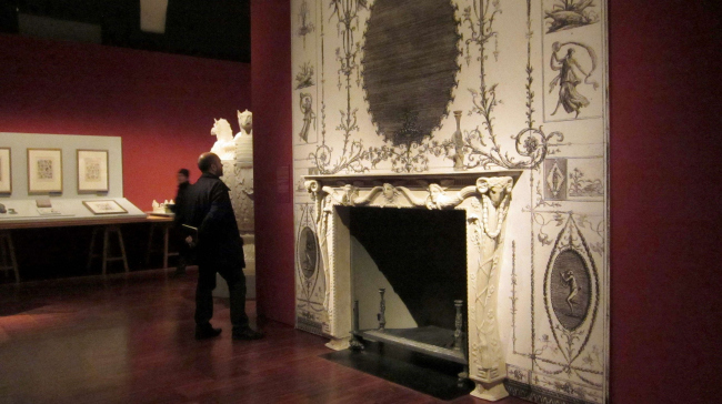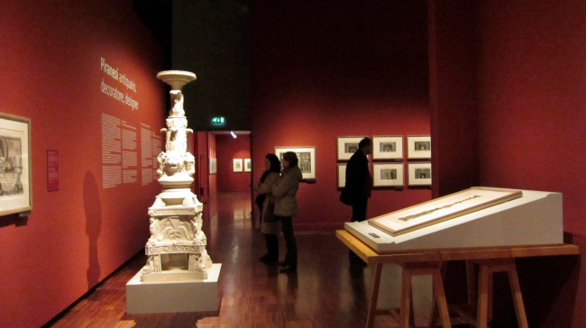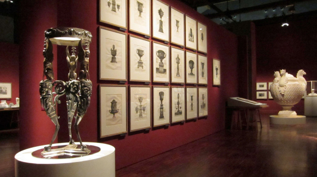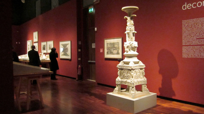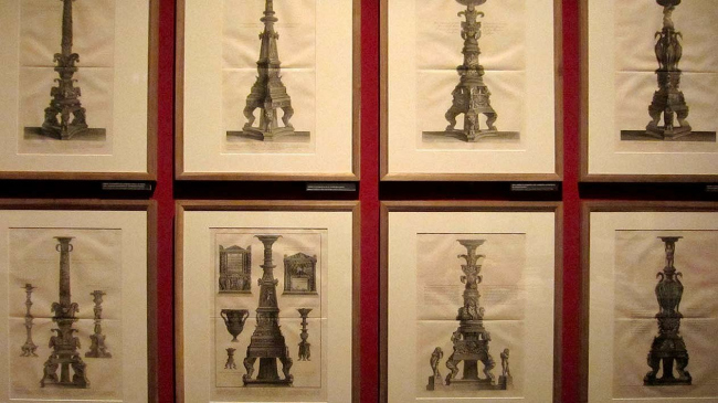 Автор другого проекта создали по гравюрам Пиранези несколько реальных предметов: камин, светильник и несколько ваз. Довольно условно сделана попытка воссоздать интерьер каминной комнаты. Тут же показан процесс создания цифровой модели на компьютере, технология отливки и сборки объектов в натуральном материале. К компьютерным чудесам мы все привыкли, и даже уже привыкли ругать цифровой продукт за его сухость и безжизненность. Но, увидев воссозданный офорт в реальном объёме, открытием для меня стало то, что «мелкотравчатость», идеально подходящая к графике офорта, может с таким же успехом существовать в авторском предметном дизайне. Оказалось, что все эти нарисованные травки, растения, раковины, переходящие в морды животных имеют свою логику, смысл и образуют неповторимый стиль самого автора.