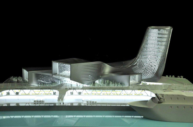 При этом здание терминала должно было не только обслуживать пассажиропотоки, но и содержать в себе административные помещения управления порта и других учреждений. Вариант «Рейзер+Умемото» предполагает разнесение всех функций по вертикали: от зала для отплывающих пассажиров внизу до администрации наверху. Собственно «морской вокзал» заключен в подиуме, верхняя поверхность которого, между многоэтажных корпусов, станет новым общественным пространством, поднятым над уровнем набережной.