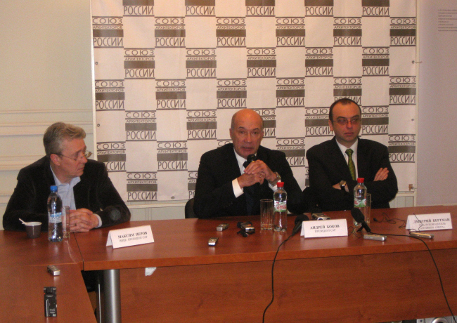 Первым взял слово Андрей Боков. Прежде всего, он напомнил о заслугах возглавляемого им «Моспроекта-4», затем подробно представил аудитории самые известные зарубежные проекты реконструкций учреждений культуры. В частности, на экране постоянно мелькали пирамида Лувра и новое здание Tate Gallery, упоминались также Ковент Гарден и Ла Скала. «У нас бытует мнение, что учреждение культуры можно разместить где угодно, и что если возможности для расширения исторического здания нет, его стоит переселить в спальный район, – посетовал Андрей Владимирович. – Однако и мировой, и отечественный опыт подсказывает, что эта практика порочна! Вспомните новое здание МХАТ или Дом музыки, построенный как филиал Московской консерватории, – на их базе выросли новые коллективы, а проблемы старых так и не были решены. Мне кажется, охранять нужно не только здания, но и то особое пространство творчества, которое в них создают конкретные люди». Иными словами, архитектор за то, чтобы памятник служил обществу, а не наоборот. Данный тезис Боков озвучивает отнюдь не в первый раз, но именно на этой пресс-конференции он вызвал горячее одобрение аудитории.