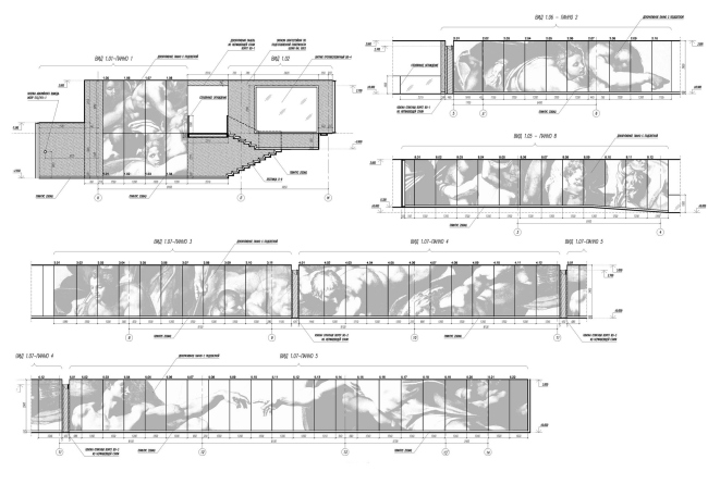 Впрочем, это совершенно не означает, что общественные зоны нового жилого комплекса напоминают больничную палату. В царство чистоты и стерильности архитекторы ввели достаточное количество цветовых и световых акцентов, безошибочно указывающих на типологию интерьера и подчеркивающих статус его обитателей. Вытянутый параллелепипед стойки ресепшн выполнен из темного испанского мрамора «имперадор дарк», чей оттенок «кофе с молоком» выгодно контрастирует с окружающей сахарной белизной. За стойкой – подсвеченное изнутри панно из матового стекла, на которое нанесено растровое изображение увеличенных фрагментов росписи Сикстинской капеллы Микеланджело. В такое же панно превращена стена коридора, связывающего все пять лифтовых блоков между собой. «Мы искали тему, способную объединить и организовать вытянутое пространство вестибюля с чередующимися лифтовыми группами и расположенными между ними рекреациями – объясняет Алексей Медведев. – Первоначальное решение стены только с помощью световых пятен казалась недостаточно насыщенным. Желание придать стене большую смысловую нагрузку привело к идее о более фактурном, но в то же время не переусложненном решении. Невероятная пластическая выразительность работ Микеланджелло показалась вполне уместной. Гипертрофированно увеличенные, переведенные в крупный растр и серый цвет, его фигуры не потеряли ни богатства фактуры, ни удивительной легкости, но приобрели абстрактное звучание, собственно, и стали теми драпировками, которые мы так долго искали».