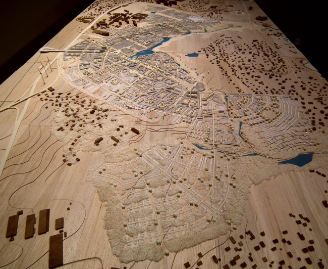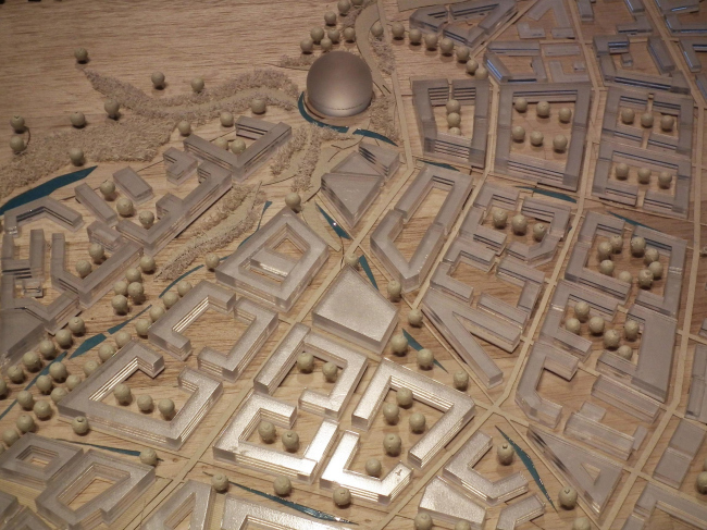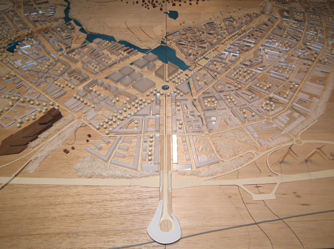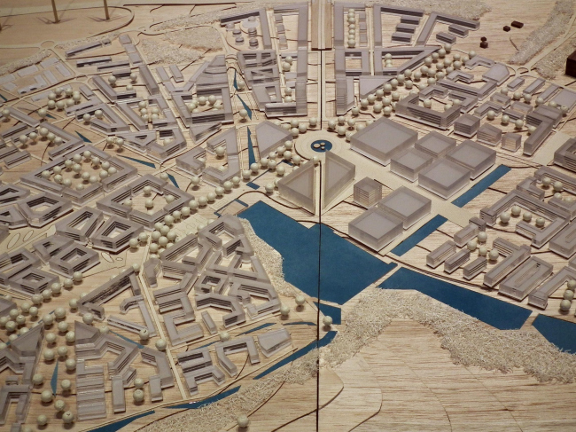 Проект шведского бюро SWECO – это очень тщательно нарисованный «шведский» городок. В нем, если присмотреться, можно найти большинство известных в истории градостроительных решений; нет ни одного одинакового дома. Сюжет этой концепции – «зеленый», то есть экологически правильный и«голубой», то есть ориентированный на воду, город. По-моему, именно это проект очень хорош; его отвергли преимущественно потому, что он «банален» – мало ли в мире хороших маленьких шведских городов.