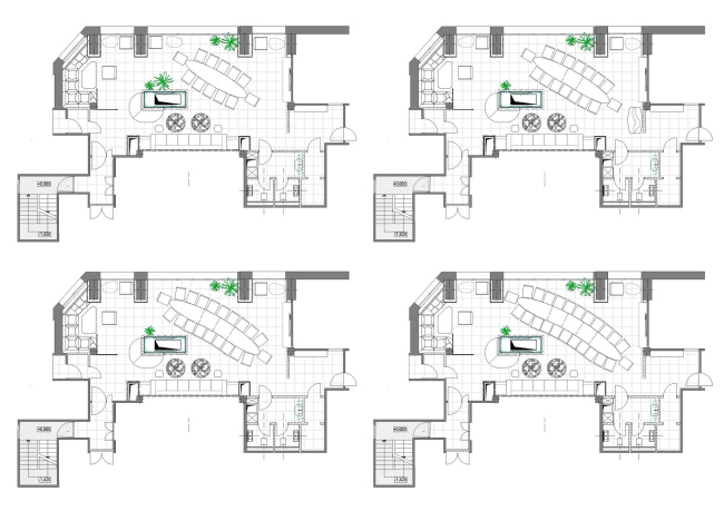 Пространство бывшего технического этажа имеет площадь 100 квадратных метров. И хотя формально это один зал, зонирование в нем выполнено так виртуозно, что помимо центрального общего стола здесь появилось много дополнительных уютных уголков и закутков, предназначенных за небольших компаний и пар, желающих поужинать в одиночестве. Эффект сложносочиненного пространства, структура которого не считывается сразу, достигается за счет большого количества отражающихся поверхностей и разнообразных световых эффектов.