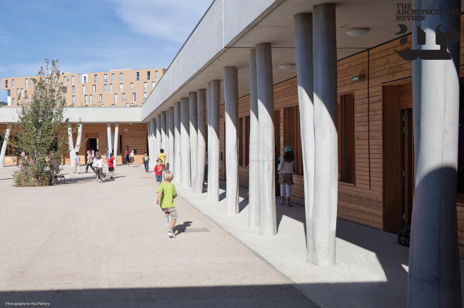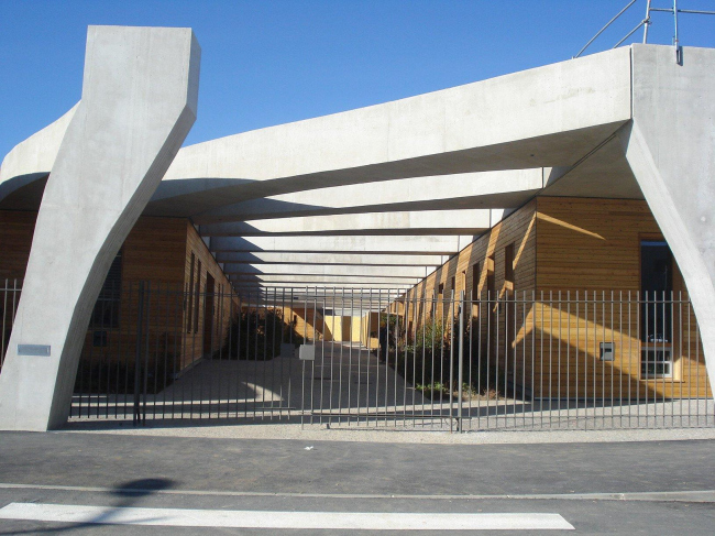 Вместе с тем, местные власти считают, что 50% учащихся (в школе объединены дети от 3 до 18 лет) будут составлять местные жители. Эта позиция отразилась и на архитектуре: она подчеркнуто «примитивизирована» и привязана к земле (в здании только один этаж, хотя его уровень повышается и понижается вслед за ландшафтом). Риччотти и его партнер по этому проекту марсельский архитектор Жан-Мишель Баттести (Jean-Michel Battesti) отталкивались от архетипического сочетания опоры и балки: здание окружено галереей из мощных бетонных опор; внутренние дворы также окружены «портиками», но их перекрытия поддерживают более тонкие, древовидные «колонны». Такое решение создает необходимые затененные пространства и бережет здание от перегрева в сухом и жарком климате Прованса; такую же роль играет озеленение — в том числе и на крыше школы. Следует также отметить что, за исключением бетона опор, в постройке преобладают дерево и стекло.
