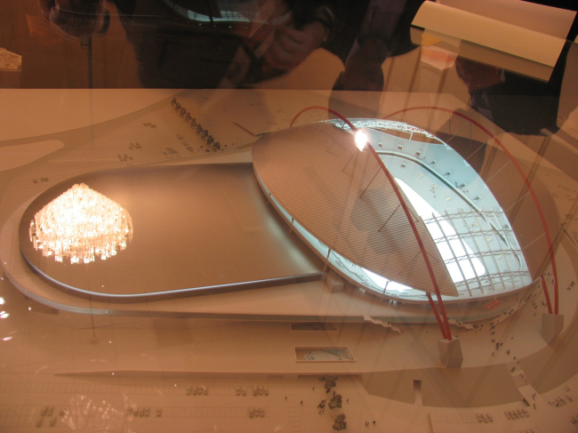 Второй проект, стадион «Спартака», предполагается расположить на свободной территории бывшего тушинского аэродрома, который может без трудностей обеспечить комплекс необходимым числом парковочных мест. Подъезд к стадиону сейчас перегружен, но скоро будет построена станция метро «Строгино» и к 2009 году станция «Митино». Было предложено два варианта стадиона – проект 2-х летней давности тех же архитекторов, что и ЦСКА с двумя большими куполами, и новый, «волнообразный». Оба проекта объединяют два стадиона: закрытый манеж и открытый стадион на 30 тыс. зрителей. При этом есть два варианта совмещения стадионов, под прямым углом и параллельно, но в обоих случаях возникают проблемы с эвакуацией и, по словам А. Кузьмина, скорее всего стадионы придется немного раздвинуть. Присутствующие представители клуба Спартак высказали пожелание в пользу первого, давнего, проекта. Среди выступлений прозвучали беспокойства о надежности сооружения и его легкости. Выслушав мнения, градоначальник принял решение еще раз пересмотреть соответствие нормам и призвал всех уходить от наметившейся тенденции перегрузки сооружений. Паркинг архитекторам предложили сделать не менее чем на 10 тыс. мест, плюс возродить проект станции метро, который давно разработан для этого места.