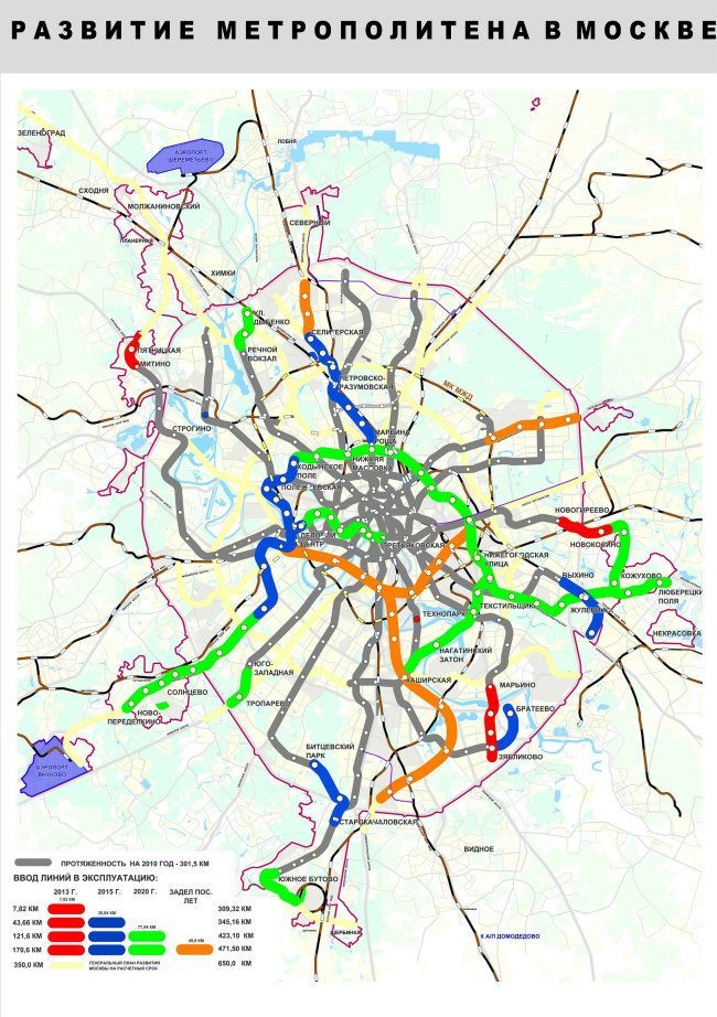 Напомним, что мэр Сергей Собянин распорядился перейти на типовые проекты станций метро 22 ноября 2010 года. Помимо проектов типовых станций городские власти также опередили перечень их строительства на 2012-2020 годы. (Схему развития метро на этот период можно посмотреть тут). Так, в планах – создание второй кольцевой линии (станции Деловой центр, Полежаевская, Ходынское поле, Нижняя Масловка и др.), а также продление метро в Южное Бутово, Зябликово, Ново-Переделкино и др.