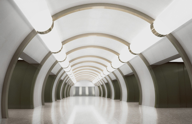 В основном будут строить станции мелкого заложения. Их три варианта: с одним цельным сводом, обнимающим пути и платформу без опор (одно из красивых решений станции такой типологии это «Тимирязевская»). Второй тип станций – двухпролетные, с колоннами посредине, и третий – трехпролетные с двумя рядами опор. Вестибюли будут продолжать пространство платформ с обеих сторон и включат в себя лестницы, эскалаторы и пешеходные переходы – минимальный набор необходимого, не больше; размеры вестибюлей будут уменьшены. Станции с одним и двумя рядами колонн в этом наборе самые экономные; с другой стороны, однопролетные станции без колонн считаются более удобными для пассажиров и работников метро. Так что будут строить и те, и другие. Архитекторы также определились с размерами станций: ширина платформы 12, длина 162, высота 6 метров. Высота стала больше, чем раньше – полтора метра добавили для удаления дыма.