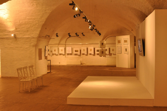 Две трети экспозиции – это работы, выполненные Гольцем для Детского музыкального театра Натальи Сац, с которой он сотрудничал на протяжении всей жизни. Эскизы костюмов к этим постановкам – а правильнее сказать, законченные сценические образы – наделены чертами гротеска и демонстрируют явное родство с хлесткой сатирической графикой 1920-х годов. Еще острее эти особенности манеры Гольца проявлены в эскизах к неосуществленной постановке «Золушки» в Ленинградском кукольном театре под руководством Евгения Деммени (1944). Интрига выставки обусловлена тем, что Гольц-архитектор 30-х-40-х производит совсем иное впечатление. Ученик рационалиста Николая Ладовского во ВХУТЕМАСе, так и не принявший формалистических принципов авангарда, он в зрелый период творчества – один из участников знаменитой «квадриги Жолтовского» (Г. Гольц, М. Парусников, И. Соболев, С. Кожин), выступивший соавтором мэтра советского неоренессанса в конкурсном проекте Дворца Советов (1932).
