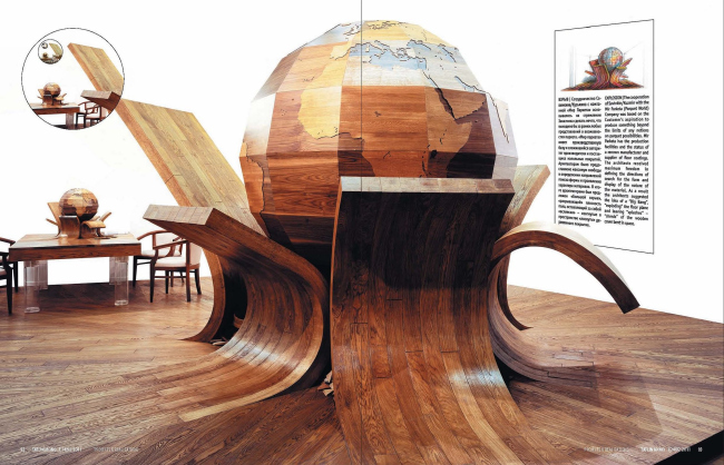 Собственно, именно об этой способности увидеть в простом необычное, а самое необычное приспособить под бытовые нужды, и посвящена выставка «Материаловидение», которую Савинкин и Кузьмин уже показывали в нескольких городах РФ, а накануне выхода монографии развернули в ЦДХ (зал DNK). Здесь были собраны самые известные работы POLE design – «Рыба», «Кокон», «Ухо», «Кальмар», «Суфле» и т.д. Одни в виде крошечных макетов из стеклопластика, больше похожих на ночники, другие в виде крупногабаритных инсталляций из картона и дерева, третьи в качестве героев видеороликов, которые показывались на двух стенах зала из четырех. Как очень точно подметил на презентации книги архитектурный критик Николай Малинин (автор вступительной статьи к монографии), на выставке не было незнакомых экспонатов, но Савинкин и Кузьмин настолько виртуозно их оформили и распределили в пространстве зала, что тем самым придали им новое, еще более задорное и свежее звучание. И действительно, в зале постоянно что-то происходило: мелькали рисунки, планы и фотографии, разноцветными огоньками мигали макеты, длинного Шапконя все время кто-то норовил или оседлать, или хотя бы потрогать. А потом в гуще событий появились сами авторы – Савинкин в своем котелке и Кузьмин в треуголке и оранжевом пиджаке, – такие же веселые, отвязные и лишенные предрассудков, как и их работы.