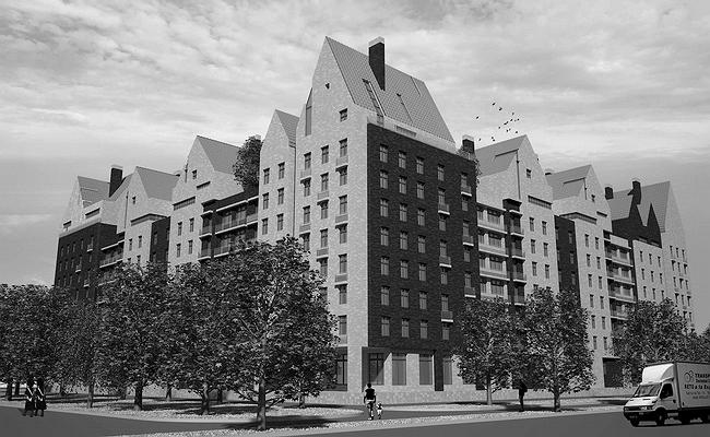 В начальных стадиях проектирования принимали участие английская планировочная фирма «Джон Томпсон». Тогда возникла идея создать здесь «идеальный город», с геометричным планом. По мнению заказчика, для жилья класса «бизнес» и «бизнес+», которое здесь планируется построить, лучшая форма – дом-квартал с большим внутренним двором, размноженный с учетом геометрии участка.