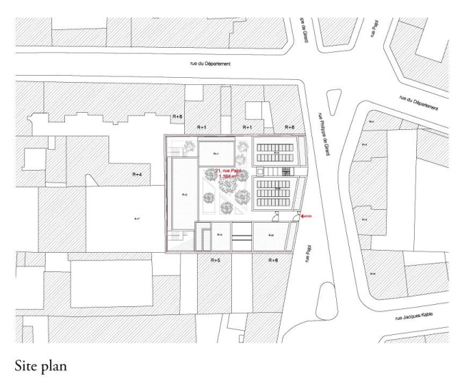 Здание располагается в парижском квартале Ла Шапель, на углу улиц Филипп де Жирар (Fhilippe de Girard) и Пажоль (Pajol) — неподалеку от бывшей железнодорожной станции, пережившей масштабную перестройку и превратившейся в культурно-спортивный комплекс ZAC Pajol. Городская среда здесь нехарактерна для Парижа — это разнородная смесь жилых домов эпохи Османа, фабрик и мастерских.