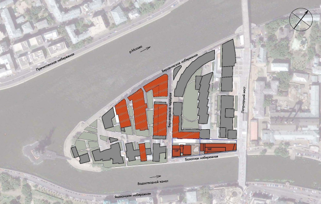 Закрытый архитектурный конкурс на проект жилого комплекса на Болотной набережной в начале этого года провела компания «ГУТА-Девелопмент», основной застройщик территории фабрики «Красный Октябрь». К участию в нем были приглашены 6 архитектурных бюро: мастерская №8 «Моспроекта-2», SPEECH Чобан/Кузнецов, «Сергей Скуратов Architects» (о проекте которого мы уже рассказывали), «Проект Меганом», ТПО «Резерв» и ООО «Архитектурная мастерская «Сергей Киселев и Партнеры». Предметом конкурсного проектирования стали участки 16 E и 17 F, расположенные на месте бывшего холодильного цеха кондитерской фабрики. Это последнее перед Патриаршим мостом здание, ориентированное вдоль набережной. По замыслу девелоперов, на его месте должны появиться два жилых дома, объединенные внутренним двором и общей инфраструктурой.