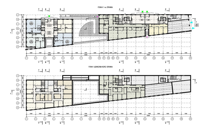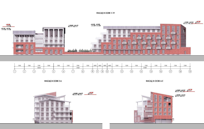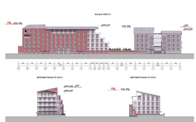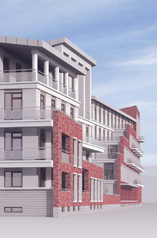 Проект ООО «АМ СК и П» вышел во второй тур конкурса, в котором архитекторы по просьбе заказчика внесли в него целый ряд изменений. В частности, редкие стеклянные балкончики на главном фасаде длинного дома трансформировались в прямоугольные эркеры, размещенные в строгом шахматном порядке, а лаконичный прямоугольный портал заезда на подземную парковку был заменен на медиапанель, заметную издалека в любое время суток. Кроме того, параллельно с доработкой этого проекта мастерская получила от компании «ГУТА-Девелопмент» предложение принять участие в конкурсе на два соседних участка, где также предполагается построить элитное жилье. Так что, как говорится, продолжение следует.
