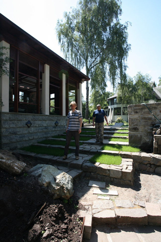 В этот проект Платонов входил постепенно. Сначала архитектор получил заказ на разработку интерьеров – к тому времени сам особняк уже вовсю строился по проекту другого автора, – а потом, придумывая внутренний облик дома, в полной мере осознал необходимость реконструкции его внешней оболочки и, что самое удивительное, смог убедить в этом заказчиков. Реконструировать действительно было что: на небольшом участке возводился массивный, многосоставной объем, который грозил подавить соседние коттеджи. Еще больше ситуация осложнялась тем, что сам участок расположен на одном из перекрестков поселка – понятно, что громоздкий «сундук» мог изменить его до неузнаваемости. При этом у Владислава Платонова, конечно, не было возможности снести полупостроенный объект, поэтому архитектор работал с тем, что есть, приложив максимум усилий для того, чтобы нивелировать внушительность сооружения, «растворить» его в окружающем пространстве.
