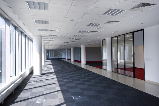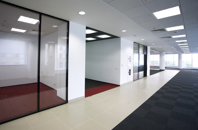 «Лимит стоимости квадратного метра, заданный заказчиком, был едва ли не более жестким, чем временные рамки разработки проекта, – вспоминает Сергей Эстрин. – Вписаться в него мы смогли лишь за счет того, что большая часть каждого этажа – это open space, а значит, не было необходимости «тащить» слишком много коммуникаций и «разветвлять» их по кабинетам». Это позволило авторам проекта не экономить на производителях – в проекте использованы фанкойлы Carrier, вентиляционные решетки Trox, трубы Rehau, светильники Sylvania и «Световые технологии». «При таких сжатых сроках проектирования самым главным для нас оказалось то, что и архитектуру, и инженерию мы полностью делали сами, – комментирует Сергей Эстрин. – Мы понимали, что только при таком условии успеем разработать проект, и, к счастью, заказчик с этим согласился». Сказались подобные сверх сжатые сроки и на том, как шла реализация проекта: фактически авторам приходилось бывать на стройплощадке ежедневно, для того чтобы лично разъяснять подрядчику все нюансы проекта, а не ждать, пока тот разберется сам.