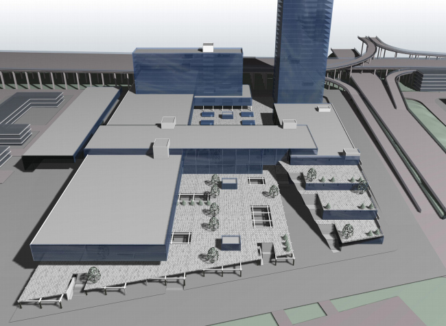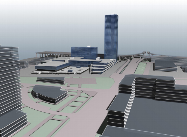 Многофункциональный комплекс, часть транспортного узла рядом с конечной станцией метро «красной ветки», сочетает лаконичную архитектуру, сложную систему организации пешеходных и автомобильных потоков, и внимательное отношение к людям, которые будут этим «узлом» пользоваться