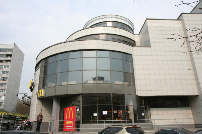 На память о предках-авангардистах указывают многие черты этого здания. Ленточные окна, то длинные, то прерванные пунктиром; точечные опоры первого этажа, две прямоугольные лестничные башни с вертикальными витражами, прорезающие протяженный объем со стороны Вешняковской улицы; круглые алюминиевые опоры, поддерживающие прямые углы, и наконец – один из самых читаемых мотивов, круглое окно над одной из таких опор, слева от «Макдоналдса». Надо сказать, что общая массивность объемов – в этом здании чувствуется материальность стены – позволяет местами сделать ее пластику скульптурно-активной.