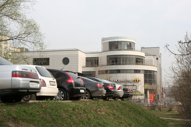 Торговый центр расположился недалеко от станции метро Выхино. В 1960-е ее окрестности были сплошь застроены длиннющими дешевыми девятиэтажками, каких в Москве немало; затем пространство между ними заросло деревьями и район превратился в просторный и очень зеленый, что особенно приятно летом. А уже в наше время Выхино стало пересадочным пунктом для множества людей, приезжающих в Москву на работу. Это небогатое, как весь московский восток, а в часы пик еще и жутко напряженное место известно постоянными толпами, давлением усталого людского потока. В таком месте, где и живет, и постоянно перемещается ужасающее количество людей, нужны торговые центры, которые, как известно, в Москве стали главным средством культурного досуга и снятия стрессов. Однако здесь их не то чтобы много: ларьки у метро да коробка Русмаркета чуть поодаль, на круглой площади, когда-то названной по прихоти советского руководства именем генсека компартии Гвинеи-Бисау. Торговый центр, построенный бюро Юрия Виссарионова, расположен как раз между этой площадью и новой жилой башней, прикрывающей его со стороны метро. От метро до нового торгового центра 10 минут пешком.