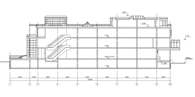 Архитекторы спроектировали торговый центр 8 лет назад, а построили только сейчас. Заказчик возводил его семь лет, последовательно решая организационно-финансовые вопросы. Это важно, потому что объясняет и не слишком большие размеры – общая площадь здания немногим меньше 9000 кв. метров, и не слишком броскую, но при внимательном рассмотрении заметную связь архитектурного проекта с неоконструктивизмом, популярным в начале 2000-х.