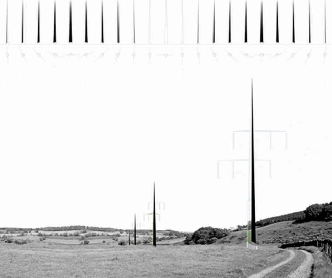 Вариант бюро Bystrup – «серьезная» опора в форме стройной и компактной башни, которая впишется в любой ландшафт: в зависимости от местных условий (например, загрязненности атмосферы), ее можно покрасить, оцинковать, выполнить из нержавеющей стали или стали кортен. Проводники расположены по треугольному профилю, что сокращает площадь магнитных полей.Проект Кэтрин Густафсон