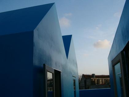 Именно в этом голландском городе мастерская была основана в 1991 году, но там пока не было не одного здания по их проекту. Однако, даже сейчас можно оспорить утверждение, что ситуация изменилась. Дело в том, что по проекту архитекторов возвели сейчас всего лишь небольшую постройку наверху реконструированного склада – своего рода домик на крыше. И это определение особенно верно по отношению к «Деревне Дидденов», как назван проект, потому что в основе его образного языка – архетипический дом с двускатной крышей, окном и дверью. Три таких блока будут вмещать в себя спальни для семьи дизайнера Сьюрда Диддена – одну для родителей, две другие – для детей. Они установлены на платформе площадью 120 кв. м, окруженной парапетом с застекленными окошками, через которые дети смогут следить за происходящим внизу, на улице. Пространство вокруг домиков оживляют скамьи, столы, кадки для деревьев, предметы садового инвентаря – все они, как и сама постройка, выкрашены в голубой цвет. Лазоревое полиуретановое покрытие стен придает постройке «ненастоящий», игрушечный облик, а также служит символом неба. Новое дополнение к перестроенному складу, где располагается мастерская и квартира Диддена, резко выделяется на фоне городского ландшафта Роттердама, где как строительный материал преобладает темно-красный кирпич. Архитекторы полагают, что их вариант надстройки зданий очень перспективен в условиях исторического центра города, где повышение плотности населения оживит старые районы. Также такой способ гораздо более экономен, чем строительство новых домов. Попасть в свой новый «флигель» Диддены смогут через две винтовые лестницы, ведущие из верхнего этажа старого здания.Деревня Дидденов. Фото: Forgemind ArchiMedia via flickr.com. Лицензия CC BY 2.0