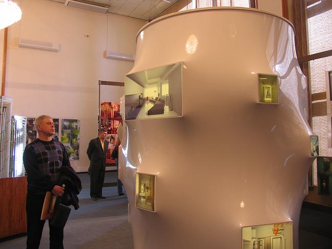 Экспозиция традиционно расположилась в «Доме на Брестской» – в «Зале макета», где проходят общественные советы при мэре Москвы, в коридорах и на небольшом четвертом этаже. Мэтры дизайна заняли третий этаж, оставив верхнюю площадку начинающим художникам. Интересно наблюдать, как по мере повышения этажности проекты становятся все более свободными и утопическими.