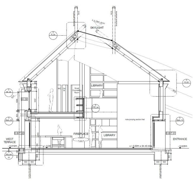 В сердце спирали находится смысловой центр здания — просторная кухня, заключенная в цилиндр. От него расходятся два крыла с помещениями для терапии и отдыха, библиотекой и т. д., а также открытые террасы. Ландшафтным дизайном прилегающей территории занимался Ким Уилки.Онкологический центр Мэгги больницы Синглтон © Adam Hollier