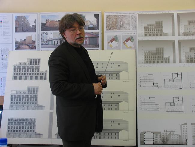 Илья Уткин показывает предпроект регенерации и реставрации жилых домов в Сверчковом переулке