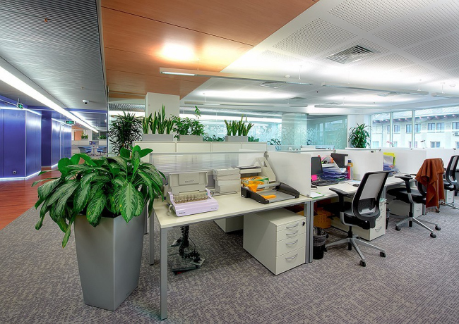 Летом этого года «Архитектурная мастерская Сергея Эстрина» реализовала проект нового офиса компании Sanofi-Aventis. Ведущая фармацевтическая корпорация переехала в бизнес-центр на Тверской улице, арендовав в нем сразу четыре этажа, типовое пространство которых архитекторы наполнили светом, цветом и буйной растительностью.