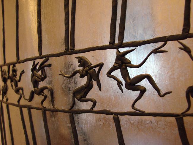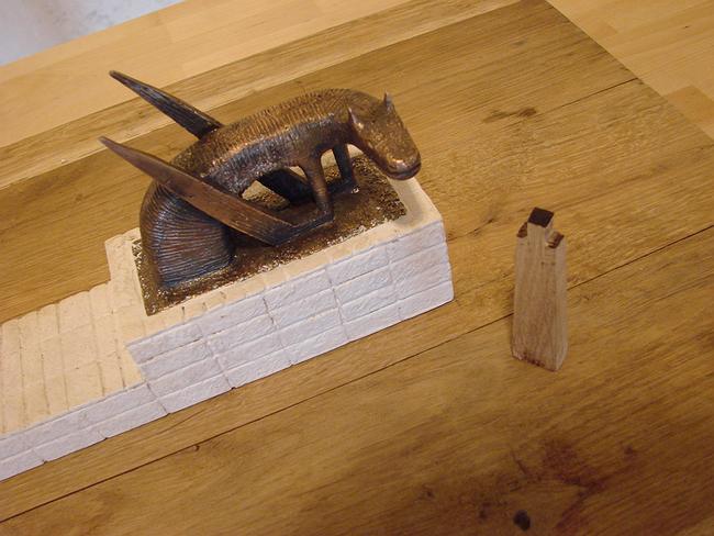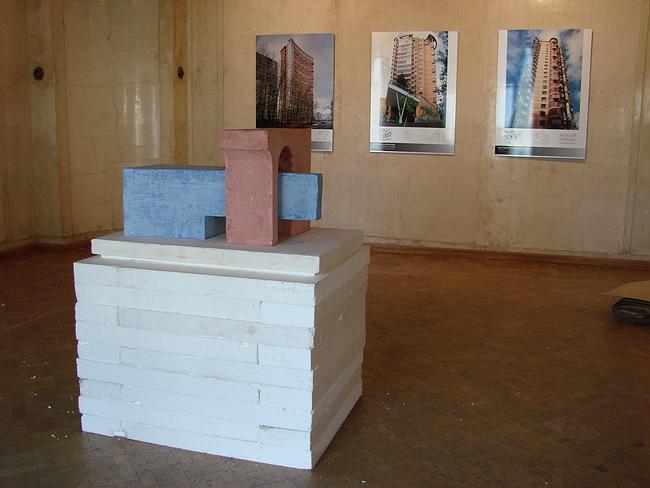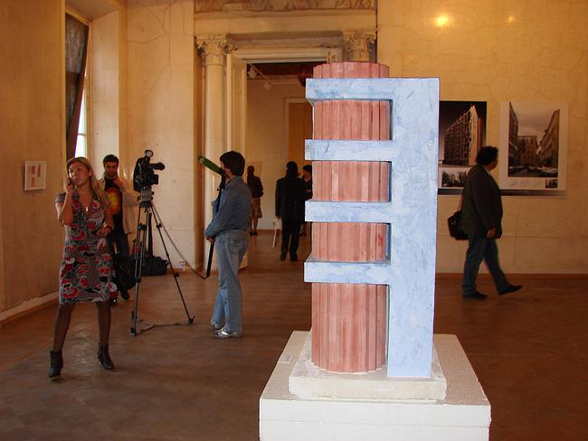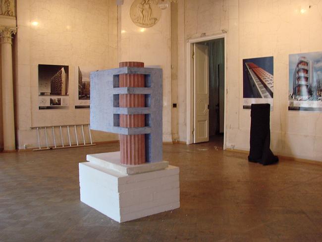 У явления несколько особенностей. Во-первых, оно кажется как-то очень тесно увязанным с любимой темой критиков – «бумажными» фантазиями концептуальных конкурсов 1980-х. Собственно, один из знаковых проектов этого рода – бронзовый «оттиск» лоосовского небоскреба-колонны, занявший 2 место на конкурсе «Стиль 2001 года» - встречает посетителей, входящих в первый выставочный зал.