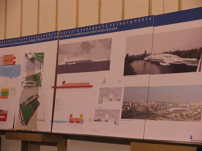 Концепция реконструкции Московского Западного порта (Метрогипротранс, НИиПИ Генплана Москвы, арх. В.С. Волович) возле «Москва-Сити» и церкви Покрова в Филях была сильно урезана мэром. Проект предлагает развитие значительного грузового порта со всеми современными технологиями – ж/д, автомобильный и судоходный транспорт под одной кровлей. На первых этажах предполагаются обслуживающие и гостиничные помещения, а в четырех подземных – контейнеры для грузов. Также в проекте заложено создание подземного транспортного узла для снабжения Москва-Сити. В ответ на проектное предложение Юрий Лужков спросил – «а зачем нам здесь вообще нужен грузовой порт? В нескольких километрах от Кремля, возле Москва-Сити, который совсем не для грузовых перевозок предназначен. Пассажирские перевозки – пожалуйста, но грузовые здесь никак не могут быть. Для этих целей я могу подсказать вам альтернативный адрес – Ельцовская промзона г. Химки». Как выяснилось, из всего порта на снабжение Сити уходит 50%, отчего было решено сократить проект в двое, оставив минимальный объем только для обслуживания «Москва-Сити».