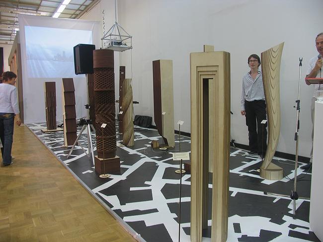 В кураторском манифесте сказано, что небоскреб является самым амбициозным заявлением архитектора в городе, и поэтому через его форму автору легче всего выразить свое кредо. Задачей конкурса было предъявить «здание как знак» - что определенно удалось. Обобщенно-слоистые, похожие на скульптуры макеты участников охватили большинство известных типов башен и добавили несколько более или менее новых вариантов, разной степени реализуемости. Макеты расставлены на площадке с нарисованными улицами так, чтобы между ними, как в городе, можно было свободно передвигаться. Куратор «Арх Москвы» и член жюри конкурса Барт Голдхоорн заметил, что это очень правильный подход, так как архитектура это всегда чертежи, которые трудно представить зрелищно, а здесь сразу и идея и объект.