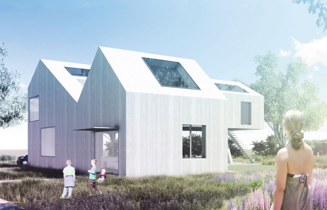 Еще одна особенность, объединившая почти все проекты-фавориты (это отметило и жюри) – внимание к освещению и расположению окон. Практически все используют мансардные окна на скатных крышах, освещая интерьеры сверху (впрочем, это естественно, ведь один из организаторов компания Velux, производитель таких окон). Все сосредоточенно обдумывают стороны света, отгораживаются от севера хозблоками и ловят южный свет, отчаянно скашивая-срезая стены. Реже авторы задумываются о том, что в стране, хотя редко и ненадолго, но бывает лето, и тогда надо прятаться от жары. Разглядывать проекты интересно: несмотря на явные (родовые) черты сходства, некоторым авторам удалось не только вникнуть в особенности актуальной и очень хорошей типологии Active house, но и наделить проект, в большей или меньшей степени, отпечатком своей личности.