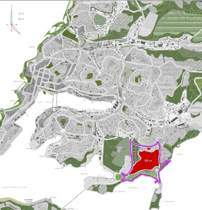 Новый район будет построен в ближайшие 9 лет в бухте Патрокл. Еще недавно она считалась необитаемой окраиной Владивостока – эти земли принадлежали Министерству обороны РФ и на них не ступала нога гражданского человека, – но теперь все изменилось. Во-первых, по территории бухты в ближайшее время пройдет скоростная автодорога, которая соединит остров Русский и аэропорт Владивостока, во-вторых, сами земли стали имуществом Фонда развития жилищного строительства (РЖС) и были определены под комплексную жилищную застройку. Для разработки проекта планировки нового района были приглашены местные архитекторы, а вот разработку эскиза застройки администрация города заказала коллективу Владимира Плоткина.
